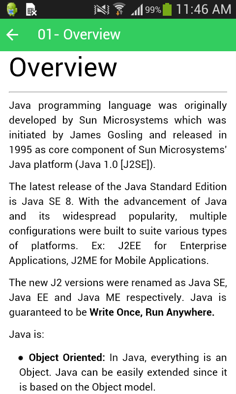 This app introduces the basic part of java. Hope it help!