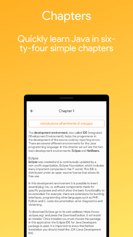 Do you want to learn the Java programming language in Italian and without invasive advertising? Download this fantastic application!