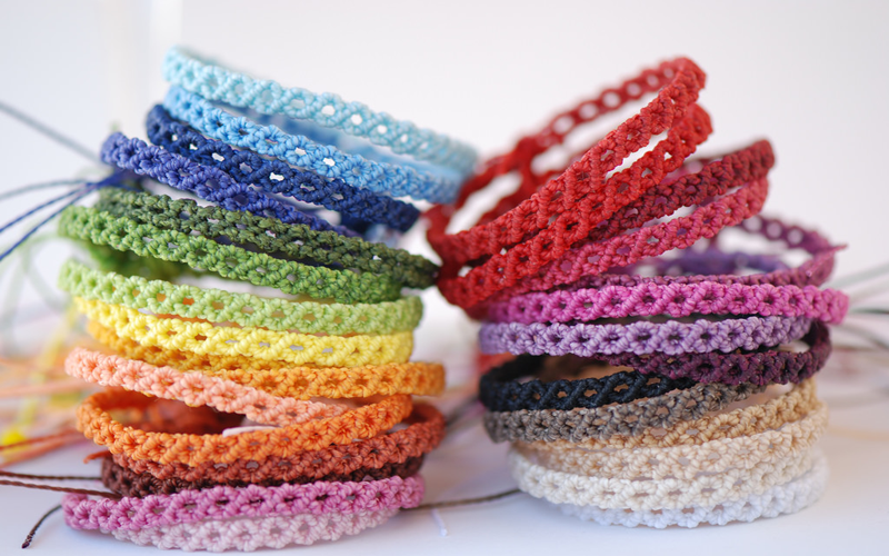 The materials needed to do a macramé work are the yarn (either cotton, jute, linen, silk or other natural fibers) and a surface on which to hold the work (usually, a wooden bar). Any thread of strong consistency is suitable for macrame work, however the choice of it is determined by the work to be done. The most commonly used yarns are cotton or silk.