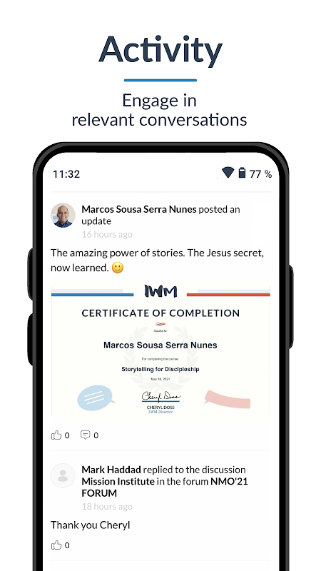 LearnMission - مکانی برای دسترسی اعضای LearnMission.org به فضاهای جامعه مانند گروه ها ، انجمن ها ، پیام ها و منابع یادگیری از جمله دوره ها و رویدادها - همه در یک محیط برنامه تلفن هوشمند بومی است. نسخه اول این برنامه بر روی عناصر جامعه LearnMission.org متمرکز است. دوره ها و رویدادها در نسخه های بعدی گنجانده خواهند شد.