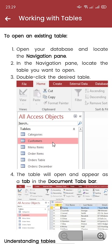 و در زیر محتوا و نحوه استفاده از برنامه Learn MS Access است.