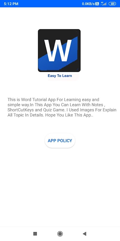 In This App You Can Learn All The Topic Of MS-Word. You Can Learn With Notes, ShortCutKeys And Quiz Game...