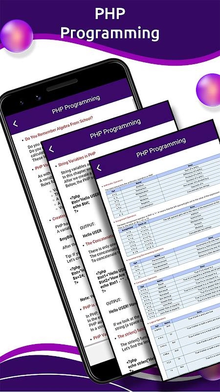 برنامه نویسی برنامه نویسی یادگیری پی اچ پی برنامه نویسی آفلاین برای کار به اینترنت نیازی به اینترنت ندارد و به شما امکان می دهد نه تنها با مطالب مکتوب یاد بگیرید بلکه برنامه ما دارای تعداد زیادی عکس است تا مطمئن شوید همه موارد را می فهمید.