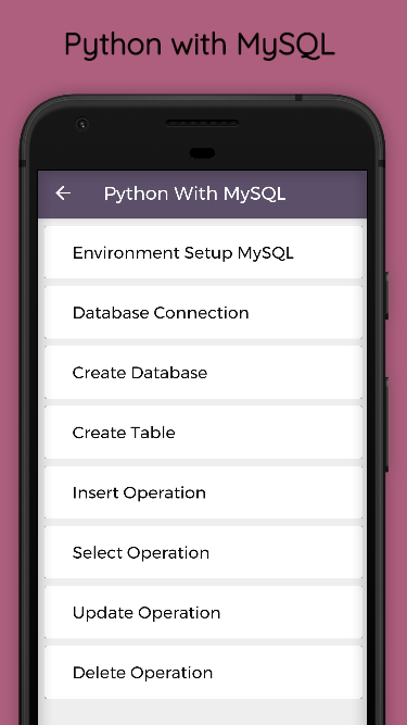 آموزشهای موجود در برنامه برای یادگیری سریع و آسان به بخشهای جامعی تقسیم شده اند. هیچ تجربه قبلی برنامه نویسی لازم نیست و برای مبتدیان طراحی شده است تا پایتون را به راحتی یاد بگیرند و همچنین برخی از مفهوم پیشرفته پایتون را که در پایتون وجود داشت را پوشش می دهد.