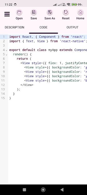 این برنامه از پیش نمایش خروجی پشتیبانی می کند. یعنی می توان کد React Native را نوشت و خروجی آن را فورا مشاهده کرد.