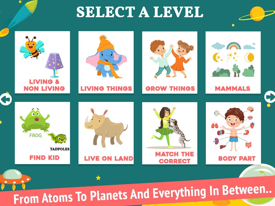 به مرکز علمی ما خوش آمدید، جایی که می توانید بیش از 30 سطح یادگیری علوم را بیابید. بچه ها می توانند در مورد چرخه آب، موجودات زنده و غیر زنده، فصول، سیارات، منظومه شمسی، اجزای بدن، جانورشناسی، بدن انسان، حواس، حیوانات، بدن حیوانات، علوم محیطی، صداهای حیوانات، گیاهان، غذا و تغذیه، علوم اجتماعی، بیاموزند. علوم کامپیوتر و بسیاری از موضوعات دیگر. ایده های جدید برای پروژه علمی بعدی خود دریافت کنید.