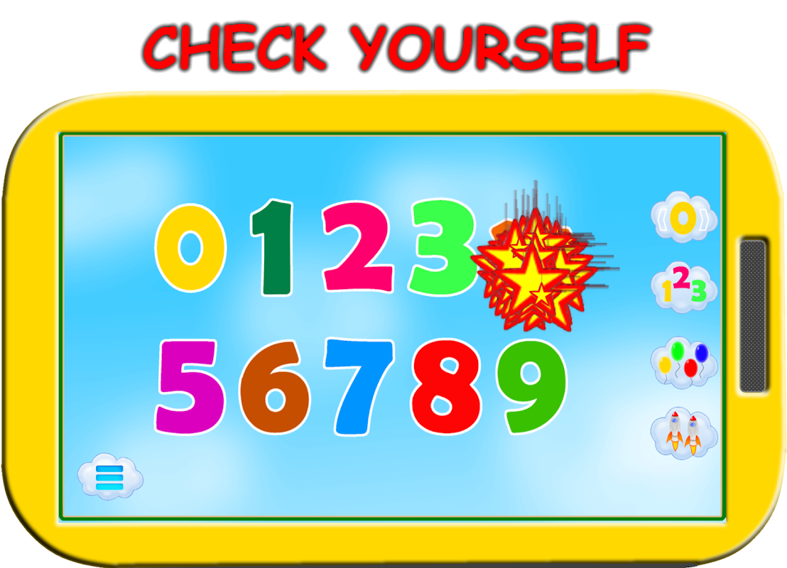 We recommend playing the games in the order described above, i.e starting the study with the game "KNOWING WITH NUMBERS", then "CONSOLIDATING THE NUMBERS", and after passing all the games, check what you learned in the game - test "CHECK YOURSELF" to open new numbers.