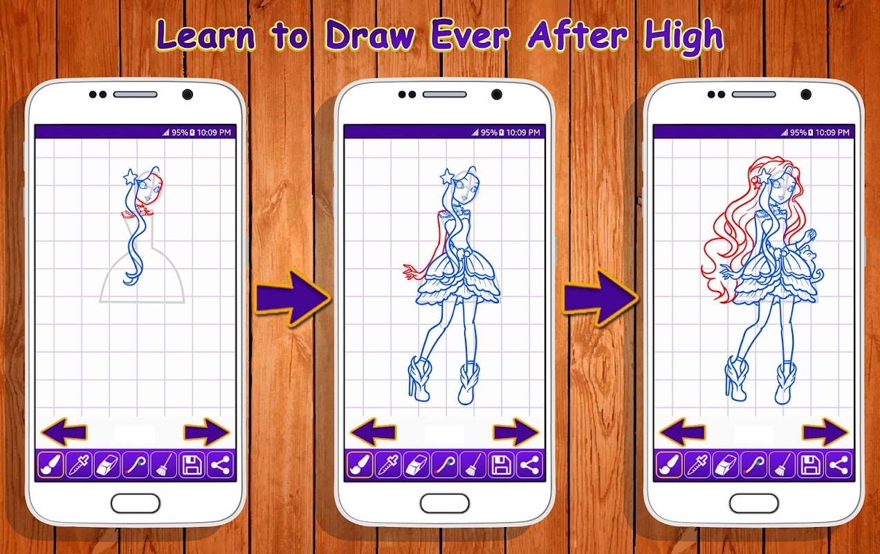If you are going to draw beautiful Ever After High Character but you have no idea how to draw, don’t worry. This drawing tutorial application will provides some of beautiful and amazing Ever After High drawing step by step.