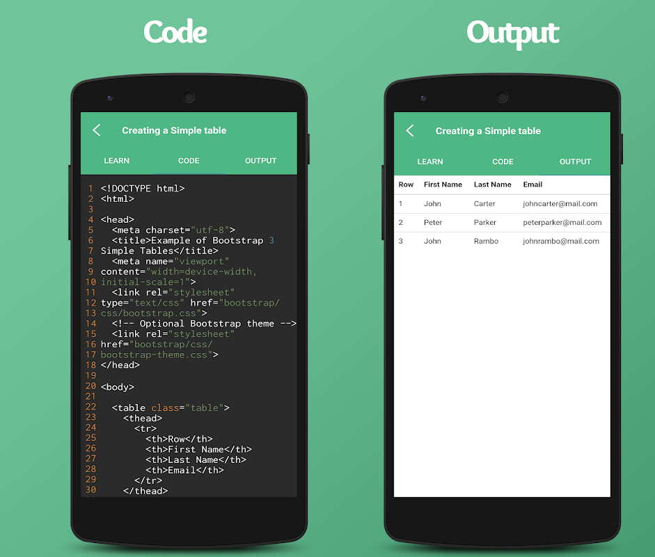 Learn Programming (توسعه وب) یک برنامه رایگان است که توسط تمرین و نمونه هایی برای طراحی و ایجاد یک صفحه وب با استفاده از HTML، CSS، Bootstrap (طراحی وب پاسخگو)، جاوااسکریپت، جی کوئری، جی کوئری،