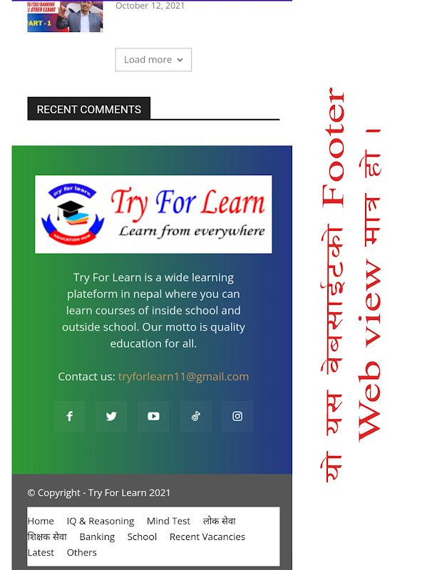 Nowadays, everyone wants to get knowledge easily at home. So, this app will helpful for you. This app is just mobile-view of www.tryforlearn.com.np.