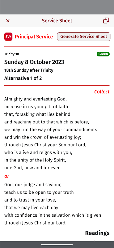 - با لمس یک دکمه به Collect و Post-Communions برای روز دسترسی پیدا کنید.