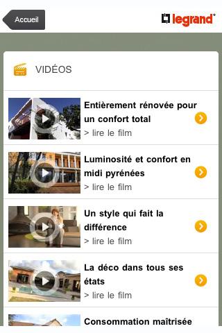 Cette application vous offre des services similaires au site legrand.fr vous pouvez vous tenir informé à tout moment et accéder gratuitement au e-catalogue tarifé.