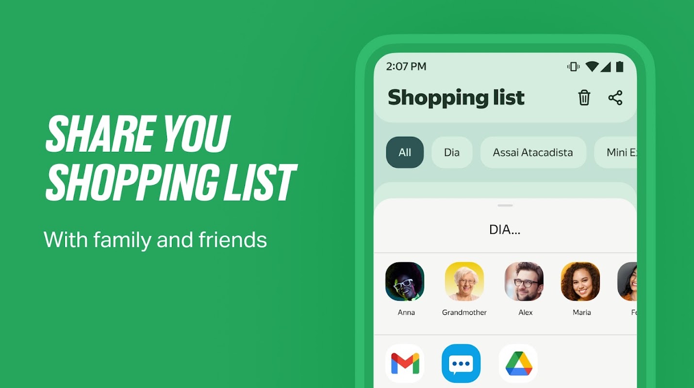 • لیست خرید خود را با خانواده و دوستان به اشتراک بگذارید.