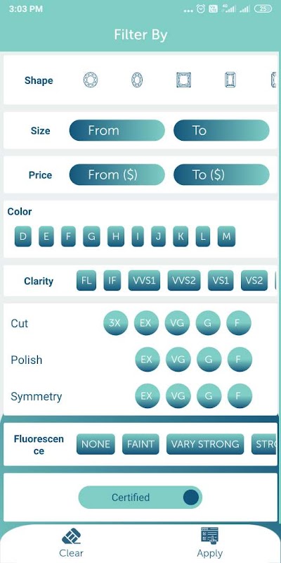 One stop shop for all your Lab Grown Diamond needs. With this app you can navigate through our pricelist and stock list. Our inventory includes Large Stones up to 6ct (GIA, IGI, & Non-Certified). Round & Fancy melees, Calibrated Layouts, Matching Pairs in Exotics shapes and Color Diamonds all available in both CVD and HPHT. Custom Order for diamonds are full filled in 3 weeks.