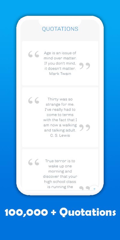 • این برنامه نقل قول زندگی مثبت دسته هایی از A تا Z دارد. تقریباً همه گفته های معروف را در اینجا خواهید یافت. همه کارها به گونه ای مرتب شده اند که نیازی به اتلاف وقت خود نباشید.