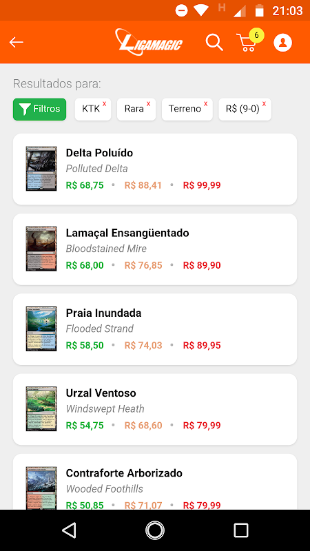 در برنامه LigaMagic شما را به یو پی اس و کارت های کاهش قیمت در فرمت های مختلف (استاندارد، مدرن، میراث، و فرمانده گدا) و خرید آنها را در بسیاری از فروشگاه های در یک بار. همچنین امنیت پرداخت از طریق LigaSegura برای اطمینان از موفقیت از خرید خود را تضمین شده است را داشته باشد.