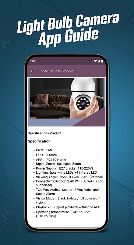 این برنامه برنامه رسمی محصول از دوربین Light Bulb نیست. این برنامه به دوربین Light Bulb وابسته نیست. اطلاعاتی که ما ارائه می کنیم از منابع معتبر مختلف است و در بسیاری از وب سایت ها موجود است. این فقط یک برنامه راهنمای است که اطلاعاتی را برای کاربران دوربین لامپ نور فراهم می کند.