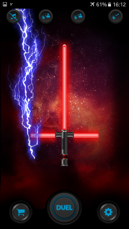 The most powerful weapon in the universe can now be in your pocket! Dominate your friends or enemies. Turn up your sound and shake the phone as if simulating a saber fight.