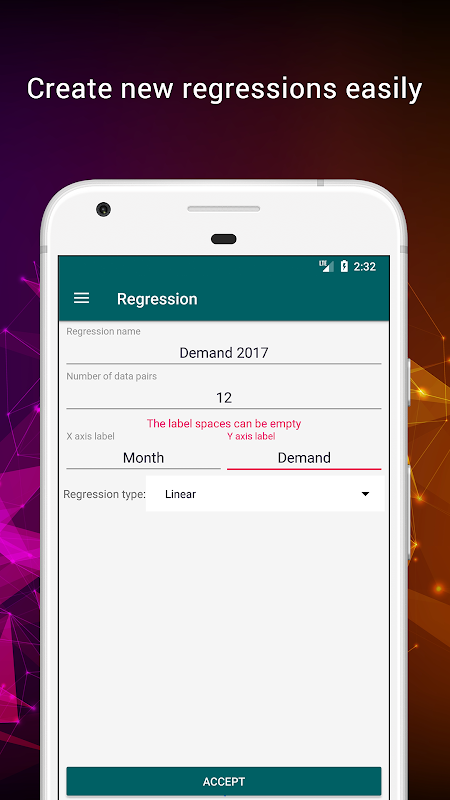 • برنامه‌نما Linear & potential regression عکس از صفحه