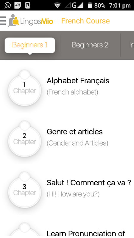 LingosMio Android app offers courses to learn English, French, Spanish and Mandarin Chinese.