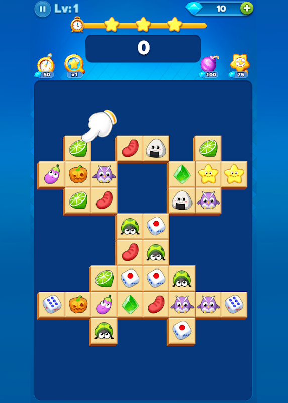 Connect 2 matching cards using three or fewer straight lines to clear cards