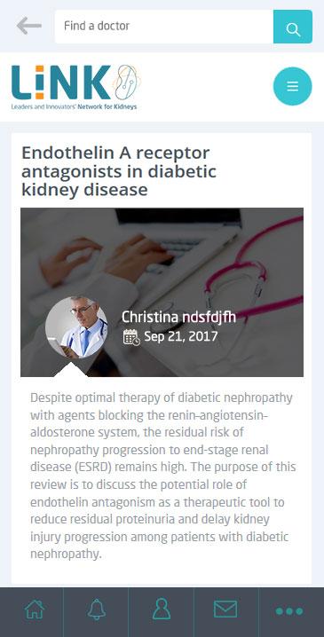 رهبران و شبکه نوآوران برای کلیه ها، یک برنامه اتصال پزشکان کلیه، که در آن آنها می توانید پزشکان دیگر مشخصات، به اشتراک گذاری موارد خود را برای دریافت توصیه و به اشتراک گذاری مطالعات و تحقیقات خود را.
