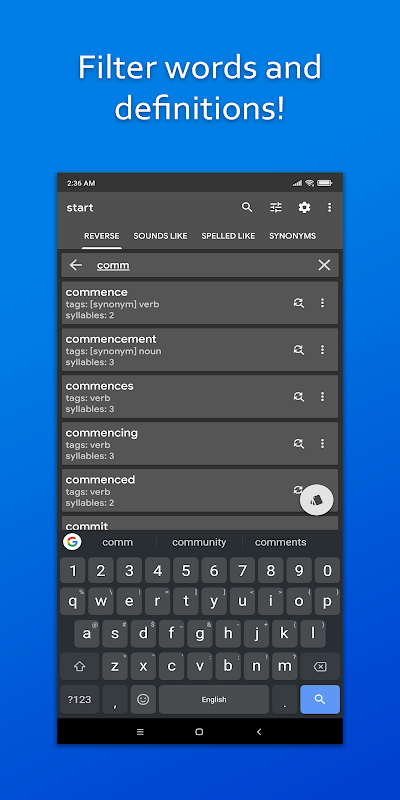 یک برنامه دیکشنری معکوس برای جستجوی کلمات مشابه ، مرتبط و همان صدا.