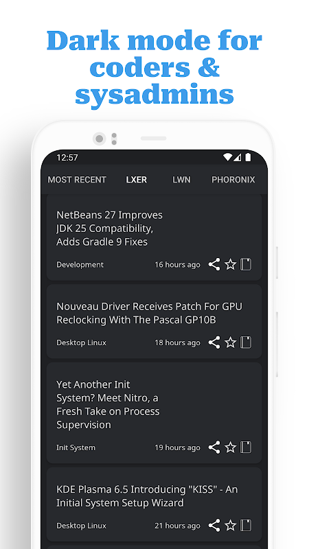 Linux News یک RSS Feed Reader است اما بر خلاف سایر اخبار خوان های عالی، بدون اتلاف وقت با رابط کاربری یا بارگذاری اخبار، شما را مستقیماً به سرفصل ها می رساند. Linux News بهترین برنامه برای خواننده روزانه است.