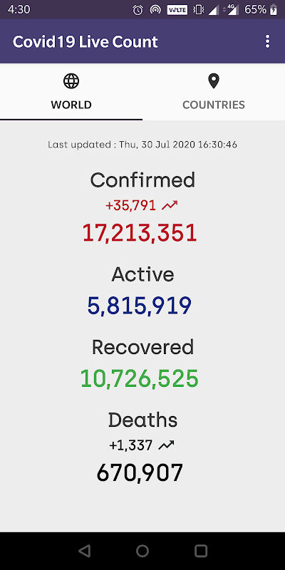 برنامه شمارش معکوس داده های زنده یا فعلی افراد آلوده و بهبود یافته از ویروس را می دهد.