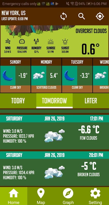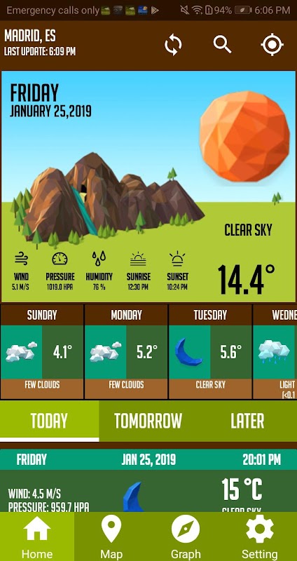 ☀️ This daily weather app display current temperature, daily and hourly forecasts, sunrise and sunset time, humidity, wind speed and air pressure with weather today & weather tomorrow.