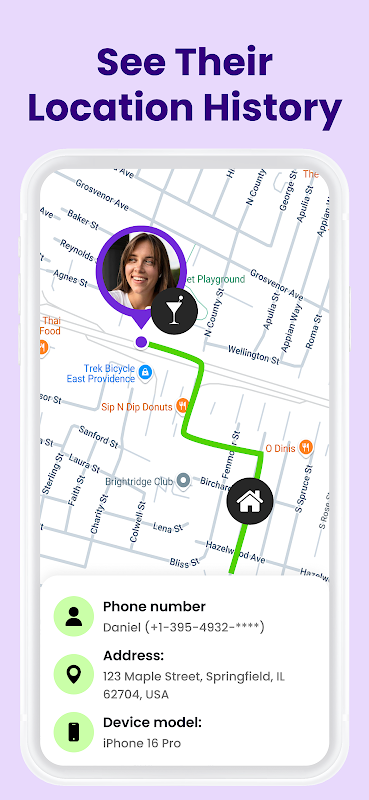 ویژگی «یافتن موقعیت مکانی من»: آیا تا به حال تلفن خود را گم کردهاید و به یک راهحل سریع و قابل اعتماد نیاز دارید؟ با ویژگی «یافتن موقعیت مکانی من» در برنامه ردیابی موقعیت مکانی، میتوانید با استفاده از ردیابی GPS زنده، تلفن خود را از دستگاه دیگری به راحتی پیدا کنید. این ردیاب تلفن همراه بر اساس شماره تضمین میکند که همیشه میدانید تلفن شما کجاست و در هر شرایطی آرامش خاطر را فراهم میکند. ویژگی «برنامه من را پیدا کن»: با استفاده از ویژگی «برنامه من را پیدا کن» به صورت آنی با دوستان و خانواده خود در ارتباط باشید. این ویژگی به افراد نزدیک شما این امکان را میدهد که فوراً موقعیت شما را پیدا کنند، ارتباطات قویتری را تقویت کرده و با ردیابی GPS یکپارچه که هر زمان که نیاز داشته باشید، ایمنی را تضمین میکنند.