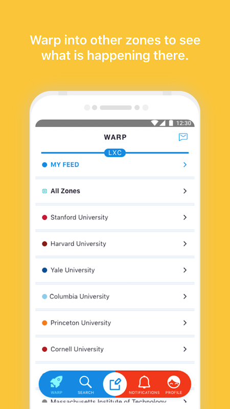 Location X Community (LXC) allows you to share thoughts, experiences, and information with people in the same zone as you as well as with people in other zones without the need to know them first. Think of it as a public board for each location. This is to make the experience as close as possible to the normal social situation during our time in college, where we see people on campus everyday.