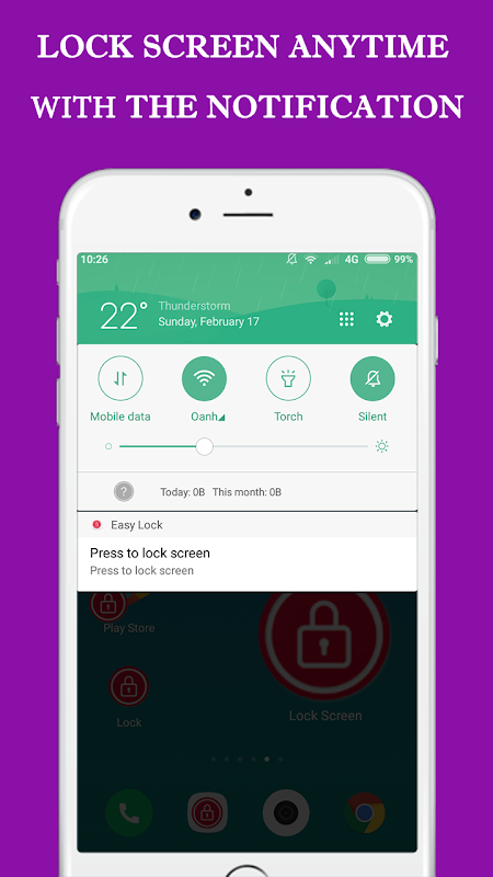 ★ Turn off and lock via notification. Just swipe and tap to turn off.