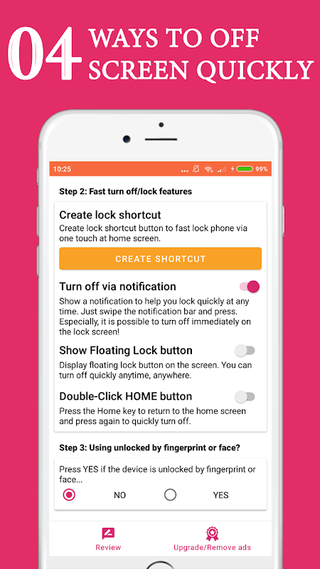 Help protect and extend the life of the hardware power button. Power button of some devices is not well designed. Pressing the button too many time may cause damage to it. Easy lock off screen can help you turn screen off and lock screen without power button anytime, anywhere.