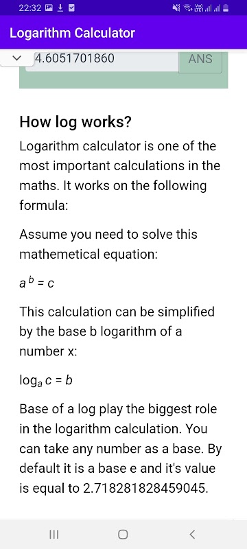 Logarithm(ln) calculation app for free.