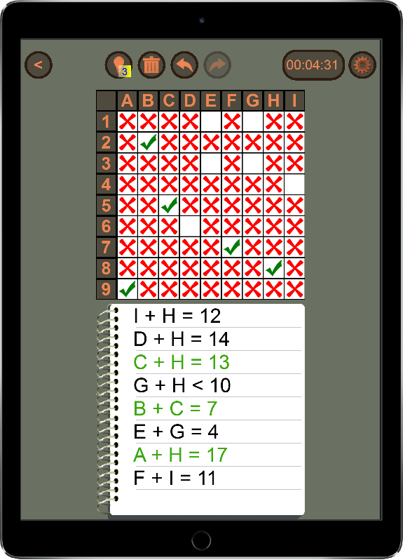 * بر اساس سرنخ ها (معادلات و نامعادله ها)، از شبکه برای ایجاد روابط بین متغیرها و مقادیر استفاده کنید: