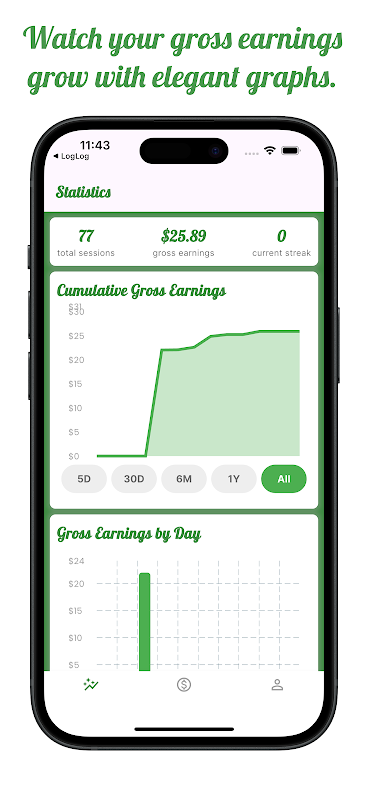 LogLog از یک الگوریتم زمان بندی بسیار تنظیم شده برای ثبت و ردیابی خودکار درآمد ناخالص شما استفاده می کند تا مجبور نباشید. یک برنامه واقعی آن را تنظیم کنید و آن را فراموش کنید، به سادگی زمانی که وارد فضای مقدس خود می شوید تایمر را شروع کنید و LogLog از بقیه مراقبت می کند. شما در حال حاضر به اندازه کافی سخت کار می کنید از نمودارها و آمارهای پیچیده Log-Log برای درک و به حداکثر رساندن پتانسیل درآمد واقعی خود استفاده کنید.