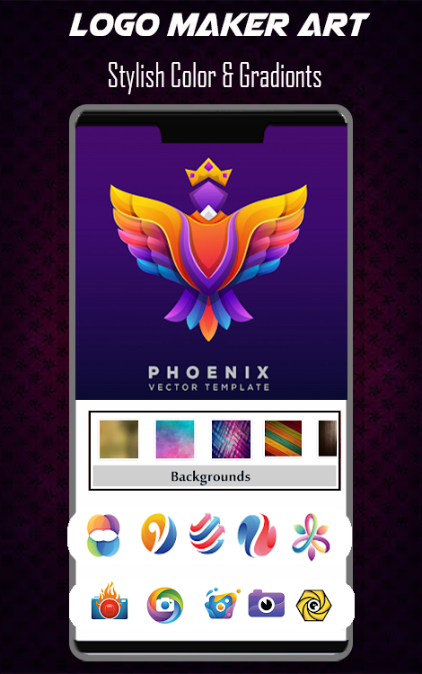 Logo Maker شامل مجموعه عظیمی از هنرهای طبقه بندی شده (استیکرها)، عناصر گرافیکی، اشکال، پس زمینه و بافت ها برای ایجاد یک لوگوی اصلی در کمترین زمان است.