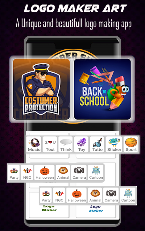 Logo Maker یک برنامه سریع و آسان برای استفاده با هزاران پوستر تبلیغاتی هنر، رنگ، پسزمینه و بافت، تبلیغات، اطلاعیه پیشنهاد، عکس روی جلد، مطالب برندینگ نامه خبری برای فروشگاه شما، پوستر تبلیغاتی برای سایت اجتماعی رستوران است. برنامه طراح لوگو با تمام ابزارهای حرفه ای ویرایش عکس برای ایجاد یک لوگوی حرفه ای ارائه می شود. تنها چیزی که در کنارش نیاز دارید یک ایده برای ساختن لوگوی خودتان است-
