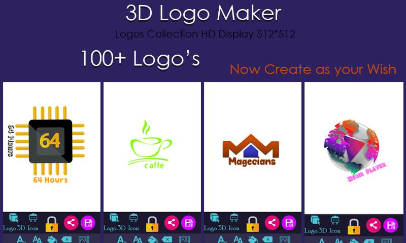 Logo Maker 3D app & Logo Creator app is designed with ease of use in mind and hence can be used by both professional designers and people without prior design experience to create custom, creative and beautiful looking logos in a matter of minutes.