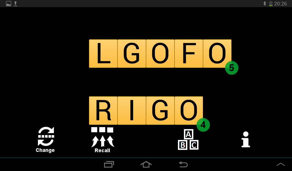 4 امتیاز برای هر کلمه 4 حرفی اعطا. 5 برای هر کلمه 5 حرف و غیره.