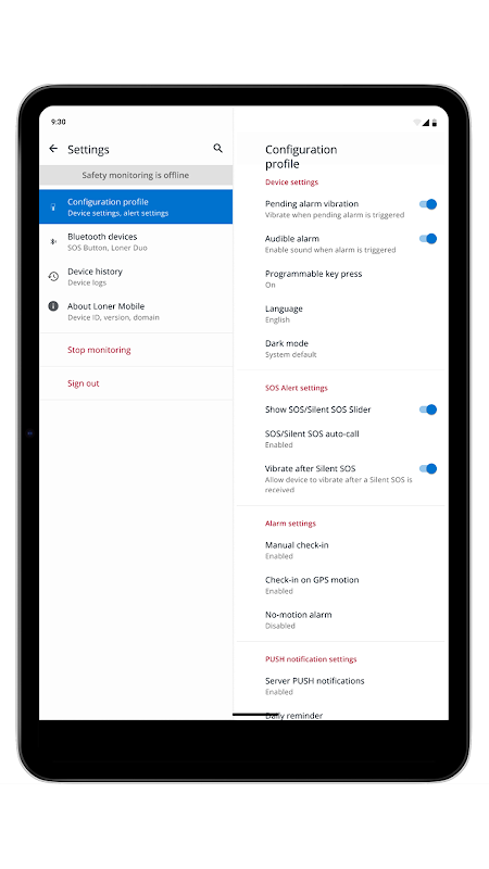 Loner Mobile بسیار قابل تنظیم است و ایمنی کارگران را از طریق تایمر ورود، تشخیص بدون حرکت (مرد به پایین) نظارت می کند و با چندین لوازم جانبی بلوتوث کار می کند که دسترسی پوشیدنی به دکمه فیزیکی SOS را فراهم می کند.