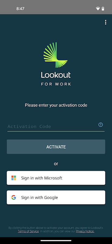 Lookout از VpnService برای کمک به ارائه فیشینگ و محافظت از محتوا استفاده می کند، که آدرس های اینترنتی را که به عنوان فیشینگ، مخرب، فهرست نشده و/یا غیرمجاز طبقه بندی می شوند را مسدود می کند. این محافظت از بازدید کاربران از وبسایتی که میتواند ایمنی دستگاه و دادههای آنها را به خطر بیندازد، جلوگیری میکند. این حفاظت ها توسط سرپرست امنیتی شرکت شما پیکربندی شده است.