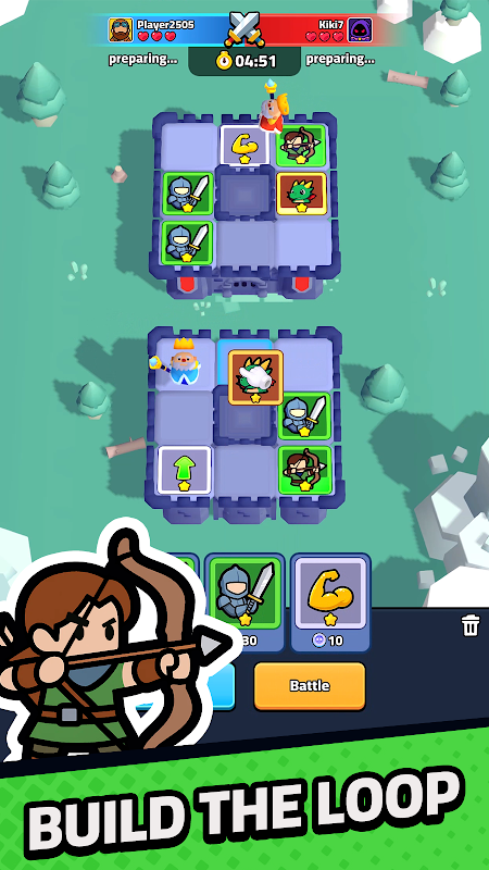 بسازید و بجنگید: کاشیهای احضار/پشتیبانی را روی حلقه قرار دهید، سپس ببینید که نبردهای خودکار نقشه شما را حل میکنند.