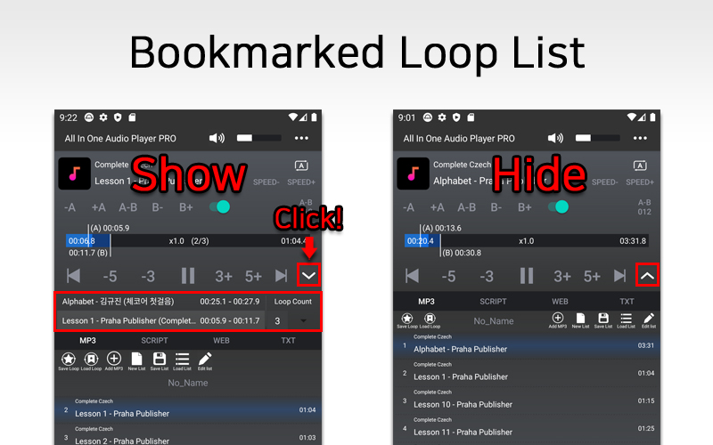 -> Loop Bookmark در نمای اصلی اضافه می شود ، بنابراین کاربران می توانند خیلی راحت تر به Loop Bookmark دیگر تغییر کنند.