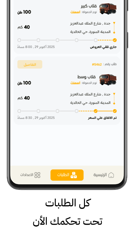 مع لوري، تقدر تنقل أي غرض بسهولة وفي أي وقت. اختار نوع الغرض، حدّد موقع الاستلام والتسليم على الخريطة، وسيقوم السائق متاح بخدمتك فوراً.