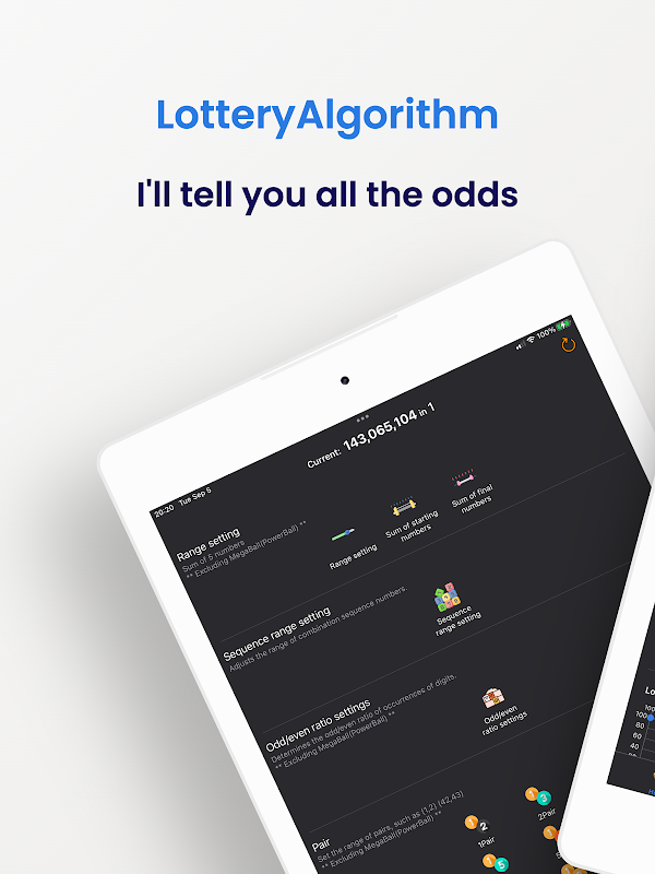 ترکیب مکان اول بدون قید و شرط در ترکیبات (MegaMillions 1 در 302,575,350، PowerBall 1 در 292,201,338 است) گنجانده شده است و این بر عهده کاربر است که محدوده را کاهش دهد.