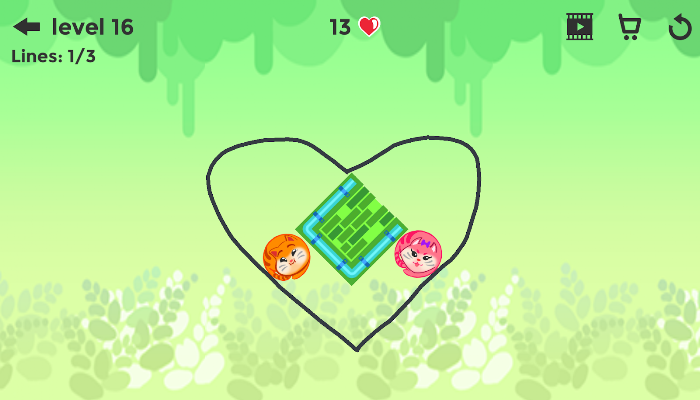 Draw lines and shapes freely to bump two cats.