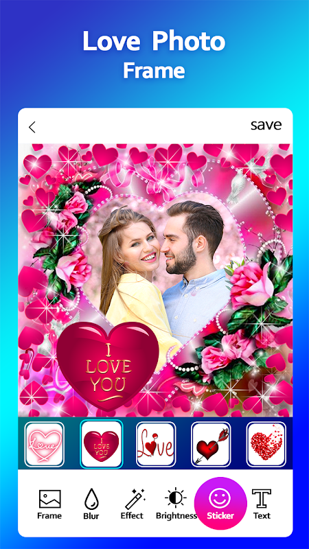 برنامه "من قاب عکسهای شما را دوست دارم" به شما کمک می کند تا با ویرایش عکس ها در قاب ، احساسات خود را ابراز کنید ، عکس مورد علاقه خود را در قاب طراحی شده مخصوص افراد عاشق قرار دهید.