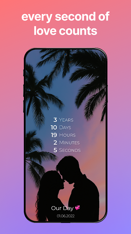 از آن به عنوان شمارنده دوستیابی، یادآوری سالگرد یا فقط یک مراسم شیرین روزانه استفاده کنید. داستان عشق شما شایسته دیده شدن است - و اکنون می توانید آن را مستقیماً در صفحه اصلی خود نگه دارید.